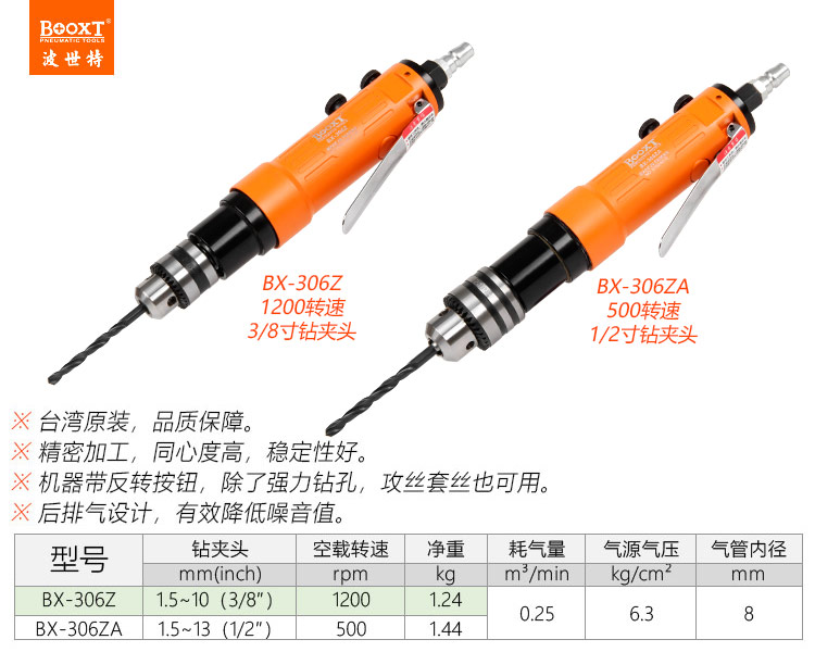 東莞市強勁五金工具有限公司提供臺灣BOOXT波世特品牌氣動工具,攻絲氣動鉆BX-306Z廠家直銷,首件享特價。咨詢熱線:4008301980