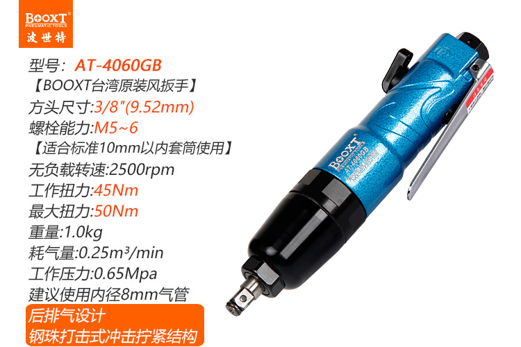 東莞市強(qiáng)勁五金工具有限公司提供臺(tái)灣BOOXT波世特品牌氣動(dòng)工具,直柄氣動(dòng)扳手AT-4060GB廠家直銷(xiāo),首件享特價(jià)。咨詢(xún)熱線:4008301980