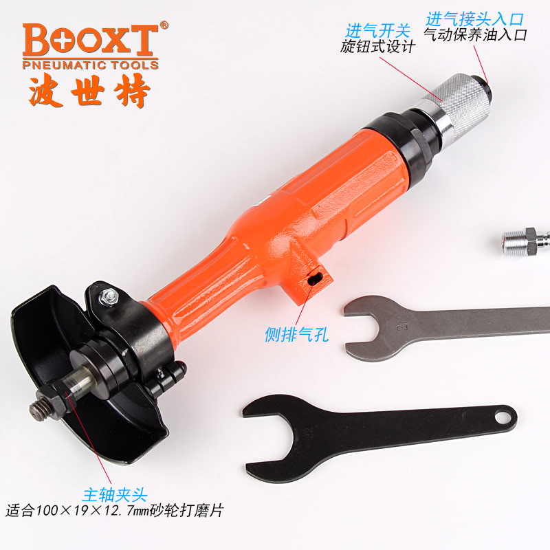 • 產(chǎn)品參數(shù): 砂輪尺寸:100*19*12.7mm(4寸) 馬達(dá)功率:700W 空載轉(zhuǎn)速:9500rpm 耗 氣 量:0.8m3/min 全 長:395mm 重 量:2.45kg(旋鈕式開關(guān))