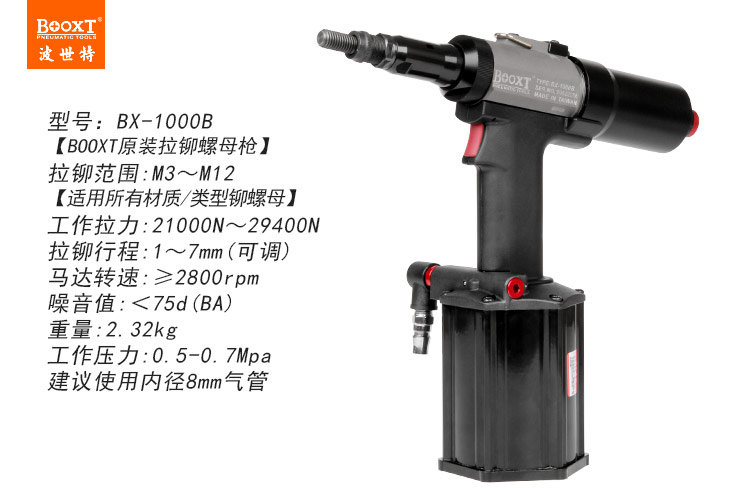 東莞市強勁五金工具有限公司提供BOOXT波世特品牌氣動工具,氣動拉鉚螺母槍BX-1000B廠家直銷,首件享特價。咨詢熱線:4008301980