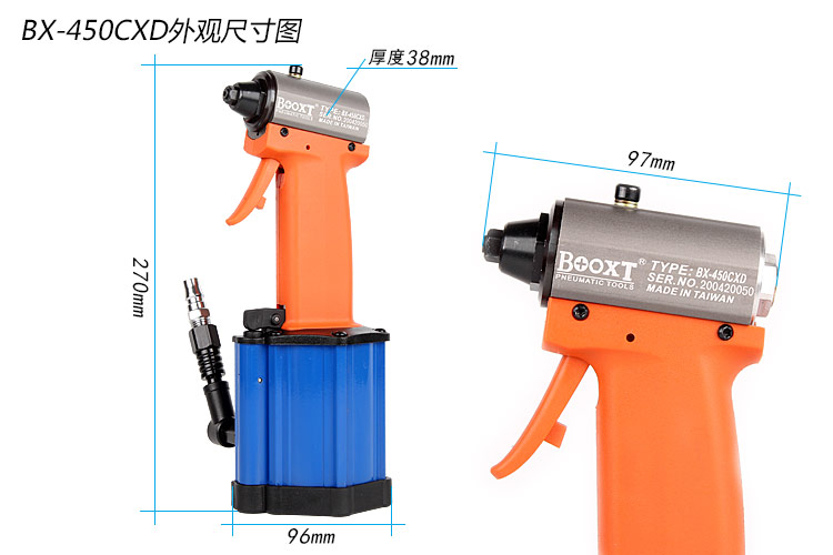 • 產(chǎn)品型號(hào): 超短氣動(dòng)拉釘槍BX-450CXD