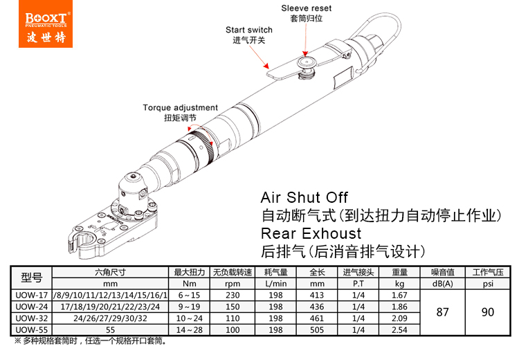 東莞市強(qiáng)勁五金工具有限公司提供臺灣BOOXT波世特品牌氣動(dòng)工具,氣動(dòng)開口定扭扳手UOW-17廠家直銷,首件享特價(jià)。咨詢熱線:4008301980