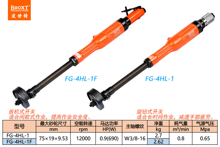 東莞市強(qiáng)勁五金工具有限公司提供臺(tái)灣BOOXT波世特品牌氣動(dòng)工具,氣動(dòng)加長(zhǎng)砂輪機(jī)FG-4HL-1F廠家直銷,首件享特價(jià)。咨詢熱線:4008301980