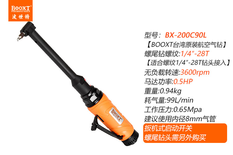 東莞市強勁五金工具有限公司提供臺灣BOOXT波世特品牌氣動工具,90度直角氣鉆BX-200C90L廠家直銷,首件享特價。咨詢熱線:4008301980