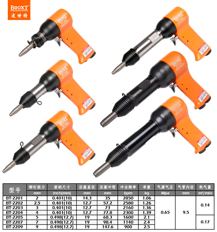東莞市強勁五金工具有限公司提供臺灣BOOXT波世特品牌氣動工具,氣動實心鉚釘錘BT-2205廠家直銷,首件享特價。咨詢熱線:4008301980