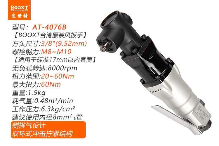 東莞市強勁五金工具有限公司提供臺灣BOOXT波世特品牌氣動工具,彎頭氣動扳手AT-4076B廠家直銷,首件享特價。咨詢熱線:4008301980