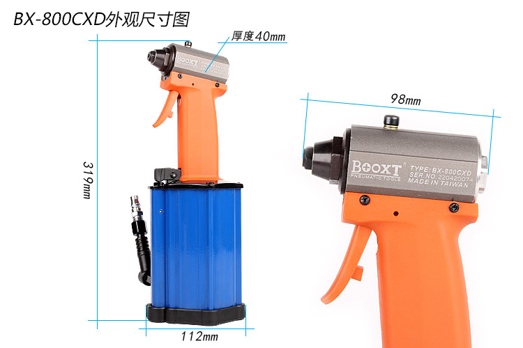 東莞市強(qiáng)勁五金工具有限公司提供臺(tái)灣BOOXT波世特品牌氣動(dòng)工具,超短身氣動(dòng)抽芯鉚釘槍BX-800CXD廠家直銷,首件享特價(jià)。咨詢熱線:4008301980