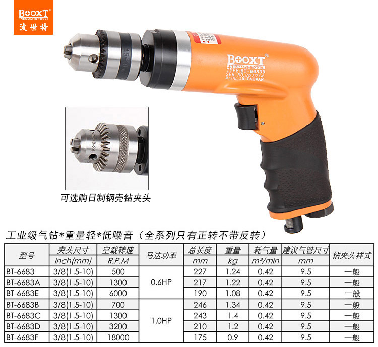 東莞市強勁五金工具有限公司提供臺灣BOOXT波世特品牌氣動工具,1300轉(zhuǎn)航鈦級氣鉆BT-6683A廠家直銷,首件享特價。咨詢熱線:4008301980