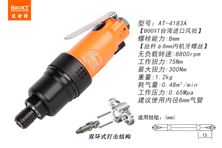 東莞市強(qiáng)勁五金工具有限公司提供臺(tái)灣BOOXT波世特品牌氣動(dòng)工具,氣動(dòng)螺絲起子AT-4183A廠家直銷,首件享特價(jià)。咨詢熱線:4008301980