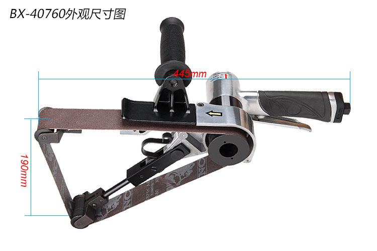 • 產(chǎn)品參數(shù): 砂帶規(guī)格:40X760mm(環(huán)形) 空載轉(zhuǎn)速:3300RPM 耗 氣 量:4CFM/min 機(jī)器長度:445mm 凈機(jī)重量:2.5kg