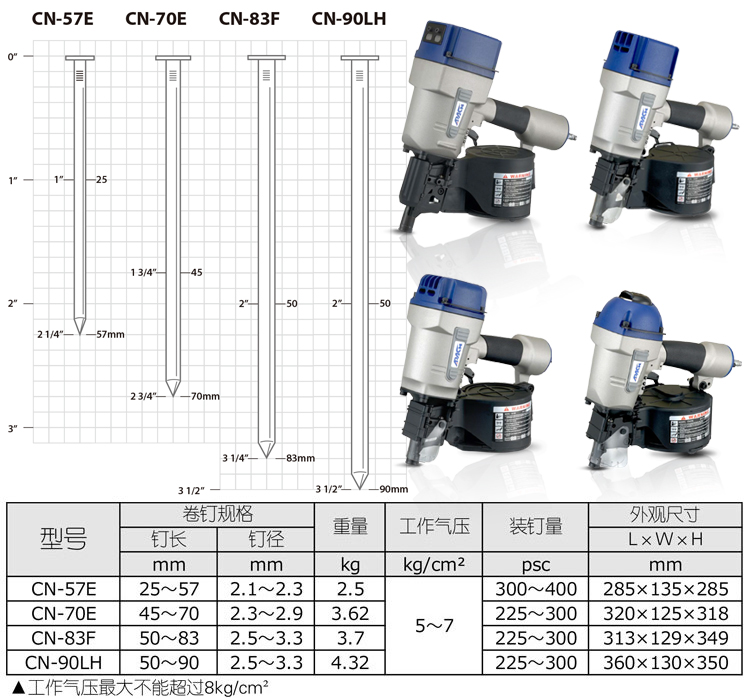 臺灣氣動卷釘槍CN-83F特點: