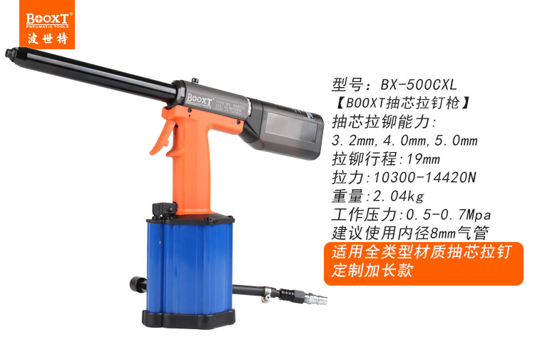 東莞市強勁五金工具有限公司提供臺灣BOOXT波世特品牌氣動工具,加長嘴氣動拉釘槍BX-500CXL廠家直銷,首件享特價。咨詢熱線:4008301980