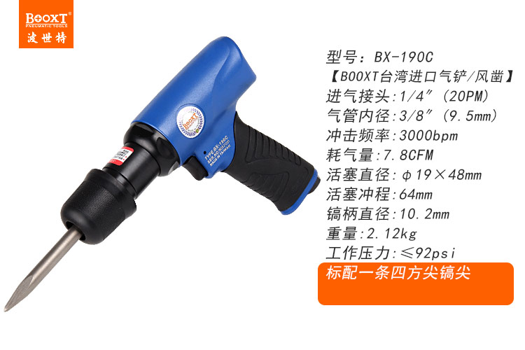 東莞市強勁五金工具提供臺灣BOOXT波世特品牌,減震型氣動鏟BX-190C廠家直銷,首件享特價。咨詢熱線:4008301980
