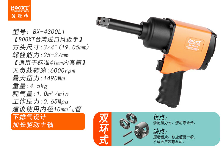 東莞市強(qiáng)勁五金工具有限公司提供臺(tái)灣BOOXT波世特品牌氣動(dòng)工具,加長(zhǎng)軸小風(fēng)炮BX-4300L1廠家直銷,首件享特價(jià)。咨詢熱線:4008301980