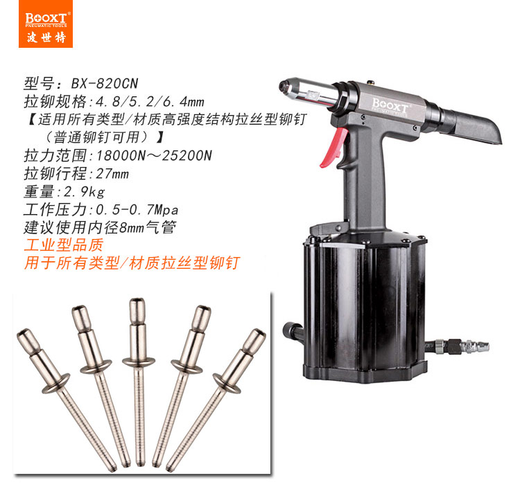 東莞市強(qiáng)勁五金工具有限公司提供臺(tái)灣BOOXT波世特品牌氣動(dòng)工具,氣動(dòng)拉絲鉚釘槍BX-820CN廠家直銷,首件享特價(jià)。咨詢熱線:4008301980