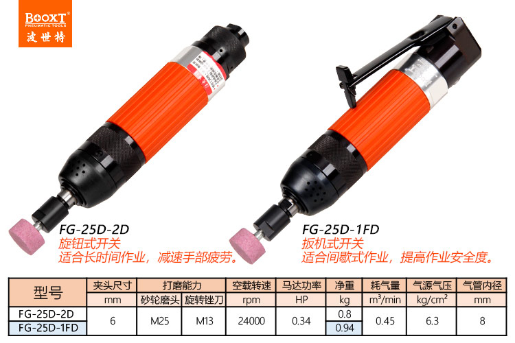 東莞市強勁五金工具有限公司提供臺灣BOOXT波世特品牌氣動工具,氣動風(fēng)磨FG-25D-1FD廠家直銷,首件享特價。咨詢熱線:4008301980