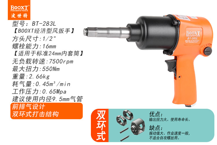 東莞市強(qiáng)勁五金工具有限公司提供臺(tái)灣BOOXT波世特品牌氣動(dòng)工具,加長軸氣動(dòng)扳手BT-283L廠家直銷,首件享特價(jià)。咨詢熱線:4008301980