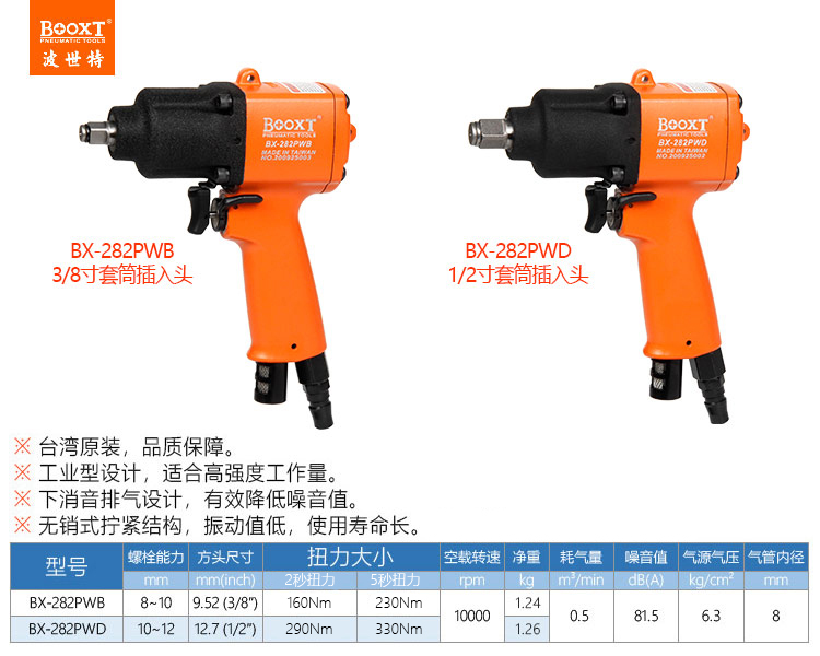 東莞市強勁五金工具有限公司提供臺灣BOOXT波世特品牌氣動工具,槍型氣動扳手BX-282PWB廠家直銷,首件享特價。咨詢熱線:4008301980