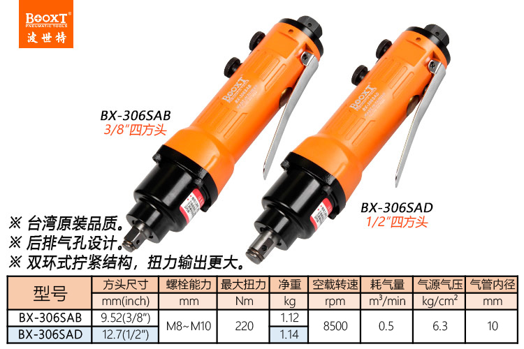 東莞市強(qiáng)勁五金工具有限公司提供臺(tái)灣BOOXT波世特品牌氣動(dòng)工具,直柄小風(fēng)炮BX-306SAD廠家直銷(xiāo),首件享特價(jià)。咨詢熱線:4008301980