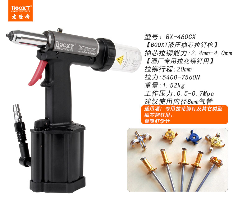 東莞市強勁五金工具有限公司提供臺灣BOOXT波世特品牌氣動工具,氣動拉鉚釘槍BX-460CX廠家直銷,首件享特價。咨詢熱線:4008301980