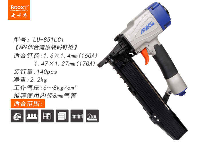 東莞市強(qiáng)勁五金工具有限公司提供臺(tái)灣BOOXT波世特品牌氣動(dòng)工具,輕型氣動(dòng)碼釘槍LU-851LC1廠家直銷,首件享特價(jià)。咨詢熱線:4008301980