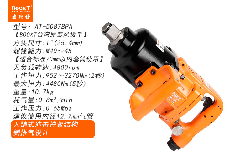 東莞市強(qiáng)勁五金工具有限公司提供臺(tái)灣BOOXT波世特品牌氣動(dòng)工具,無(wú)銷(xiāo)式風(fēng)炮AT-5087BPA廠家直銷(xiāo),首件享特價(jià)。咨詢熱線:4008301980