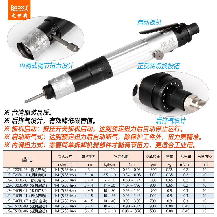 東莞強勁五金工具有限公司提供臺灣BOOXT波世特氣動工具,可調定扭力風批US-LT40BL-07系列廠家直銷,首件享特價。咨詢熱線:4008301980