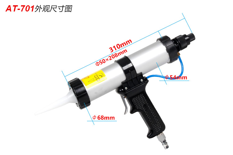 • 產(chǎn)品參數(shù): 氣壓壓力:0.4-0.8Mpa 容 量:310ml 工具長度:310mm 工具凈重:0.64Kg 【經(jīng)濟型/硬管膠用】