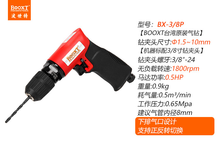 東莞市強勁五金工具有限公司提供臺灣BOOXT波世特品牌氣動工具,正反轉(zhuǎn)氣鉆BX-3/8P廠家直銷,首件享特價。咨詢熱線:4008301980