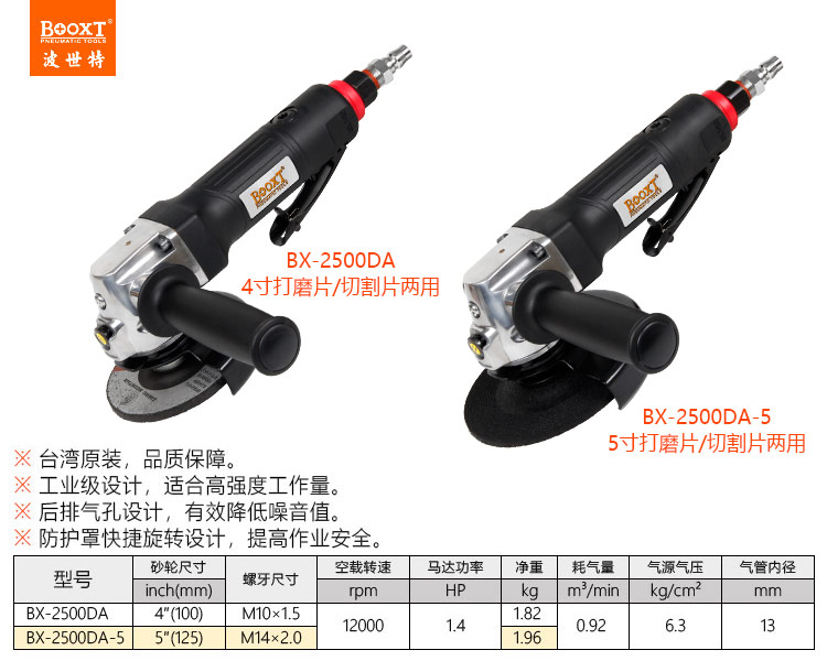東莞市強(qiáng)勁五金工具有限公司提供臺(tái)灣BOOXT波世特品牌氣動(dòng)工具,后排氣氣動(dòng)角磨機(jī)BX-2500DA廠家直銷,首件享特價(jià)。咨詢熱線:4008301980