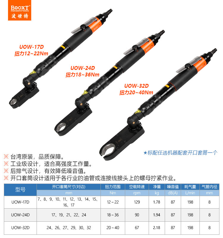 東莞市強(qiáng)勁五金工具有限公司提供臺灣BOOXT波世特品牌氣動工具,大扭力氣動開口扳手UOW-17D廠家直銷,首件享特價。咨詢熱線:4008301980