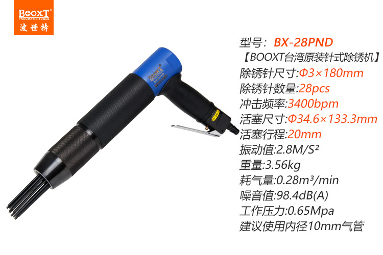 東莞強(qiáng)勁五金工具提供臺(tái)灣BOOXT波世特品牌,28針氣動(dòng)除銹機(jī)BX-28PND廠家直銷(xiāo),首件享特價(jià)。咨詢(xún)熱線(xiàn):4008301980