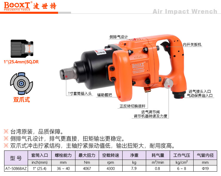 東莞市強勁五金工具有限公司提供臺灣BOOXT波世特品牌氣動工具,雙爪式氣動風炮AT-5086BAZ廠家直銷,首件享特價。咨詢熱線:4008301980