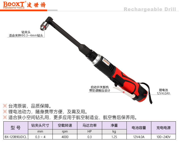 東莞市強(qiáng)勁五金工具有限公司提供臺(tái)灣BOOXT波世特品牌五金工具,充電航空彎頭鉆BX-120B90JDCL廠家直銷,首件享特價(jià)。咨詢熱線:4008301980