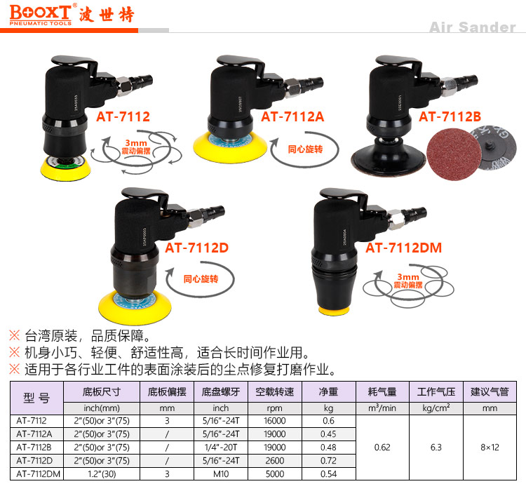 東莞強(qiáng)勁五金工具有限公司提供臺(tái)灣BOOXT波世特氣動(dòng)工具,迷你氣動(dòng)偏心打磨機(jī)AT-7112廠家直銷,首件享特價(jià)。咨詢熱線:4008301980
