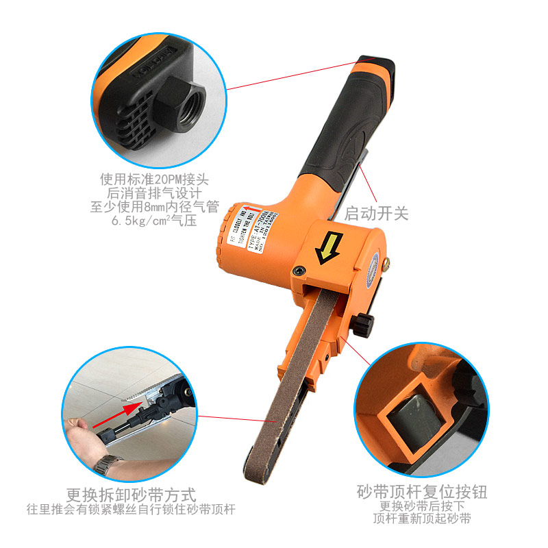 手持氣動砂帶機特點:
