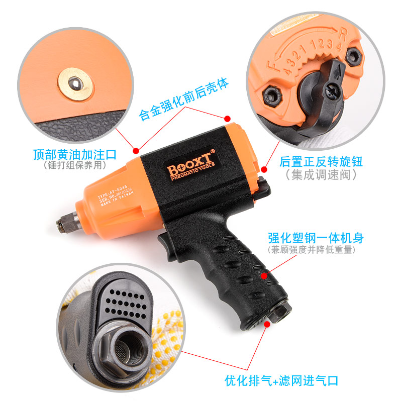 氣扳手特點:(重力壓鑄外殼,強度更高不變形,提高耐用度)